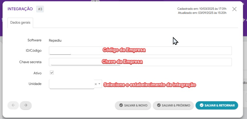 Após isso, edite sua integração da repediu: