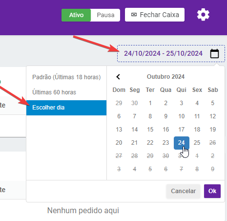 O tempo de exibição dos pedidos na sua tela do dashboard pode ser ajustado de acordo com o tempo que precisar de acordo com a sua produção. Para ajustar o tempo que deseje visualizar o pedido, acesse Configurações > Parâmetros
