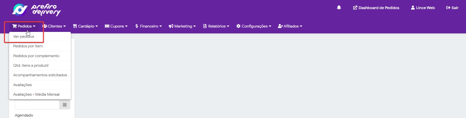 Para gerar um relatório por vendedor, acesse o Painel Gestor, clique em Pedidos > Ver pedidos, em seguida, na parte dos filtros, escolha o atendente e clique em Filtrar. Você também pode selecionar o período que desejar.